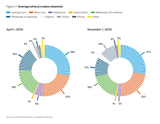 Online sales comprised about 2% of the average winery’s sales on April 1, 2020, before the effects of COVID-19 shutdowns hit. By November 1, 2020, the average winery’s online sales had jumped to 10%. While positive, Silicon Valley Bank (SVB) found much of that growth resulted from “passive online sales” (i.e., consumers seeking the brand went directly to the site). Therefore it urges businesses to up their ecommerce game to reach the “large numbers of consumers” that already or soon will prefer online shopping to in-person shopping.