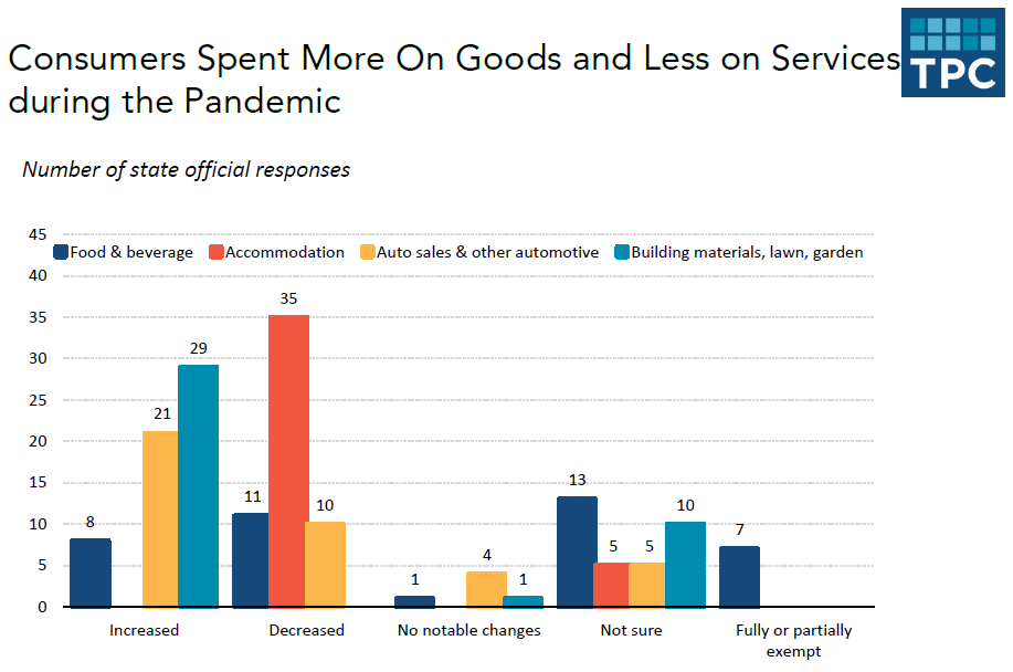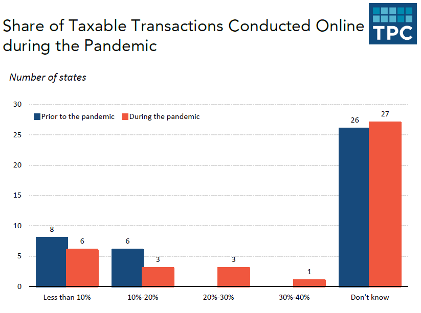 Indeed, the survey revealed many states could not determine “the share of taxable sales transactions conducted online before and during the pandemic” due to “a lack of information.” This makes it difficult to forecast future sales tax collections and budget.