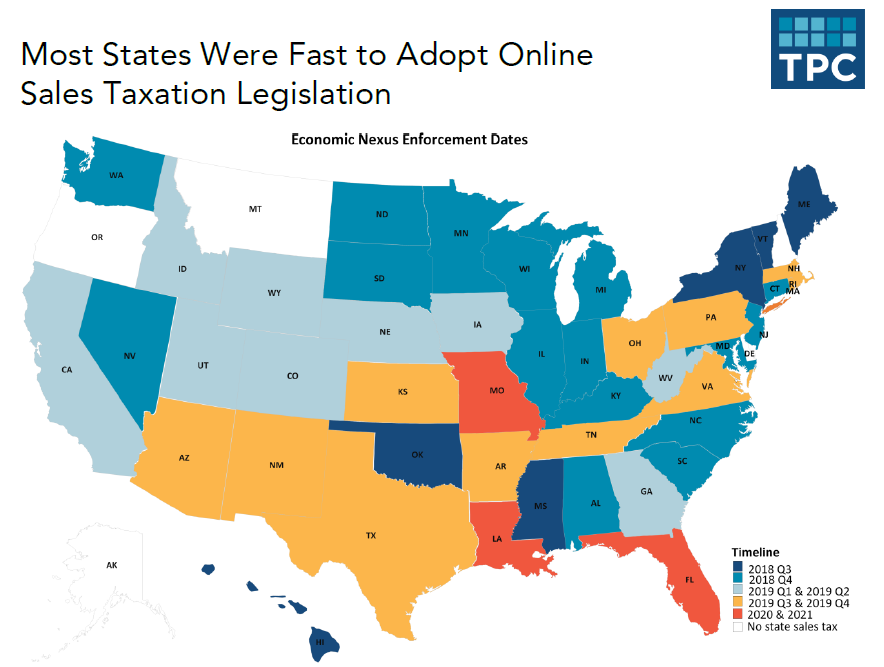 States think taxing online sales is beneficial but need more data (all states with a sales tax have economic nexus laws that tax remote sales)