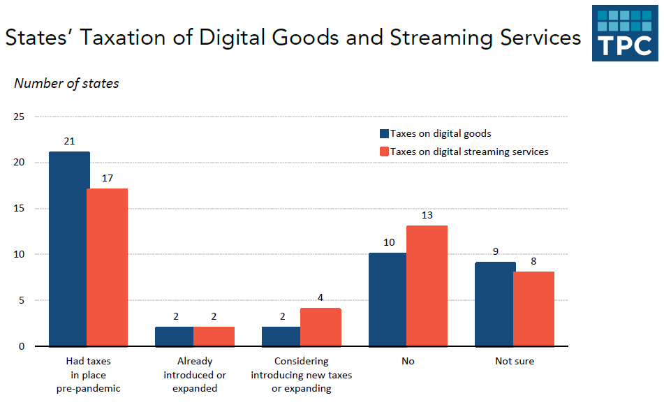 Thus, four states said they plan to tax new services, primarily digital streaming and subscription services. States that taxed these products and services benefited during the pandemic, but the report notes that “taxing the digital economy can be challenging and have unintended consequences.” One need look no further than Maryland's contentious digital advertising tax to understand why states want to further study this issue.