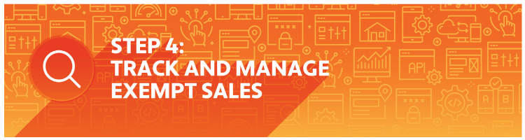 If you don’t already have Avalara AvaTax working behind the scenes, you’re missing out on automated sales tax calculations — in real time. AvaTax uses predefined tax codes to ensure that based on the type of software your business sells, the appropriate tax rate is applied if the software is taxable in a specific jurisdiction. If you haven’t used the Avalara Tax Code finder to identify the tax codes for your type of software, we recommend checking it out. With automated sales tax calculations and product taxability taken care of, move on to address exempt sales in Step 4.