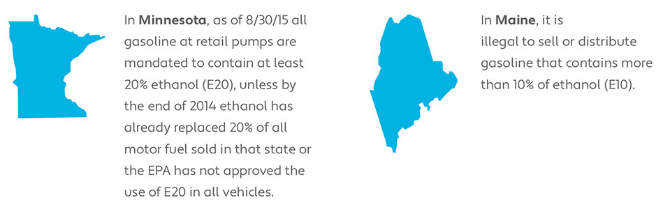 An example of how state regulations differ can be seen in the treatment of ethanol-blended fuels in Minnesota and Maine.