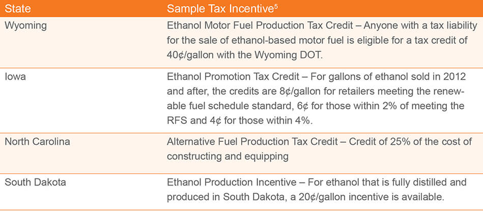 Similar to the tax credits from the federal government, individual states often offer tax credits and breaks for the production and use of ethanol. While each state is different, here are a few